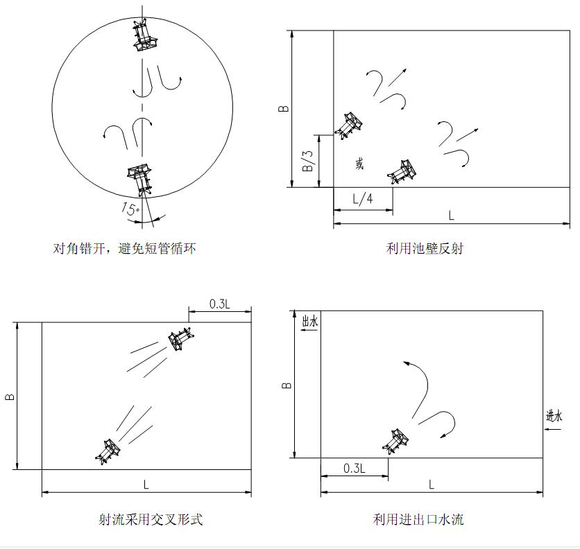 3.潛水攪拌機與曝氣系統配合使用可使能耗大幅度降低,充氧量明顯提高,有效防止沉淀。
